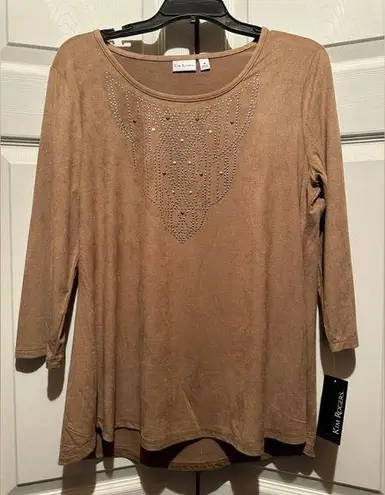 Tan Medium Kim Rogers top with suede feel material. - $17 - From Kim