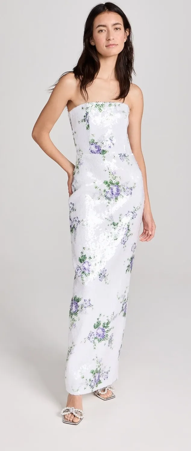 Tanner Fletcher Marilyn Floral Sequin Strapless Midi Dress Size 1 / US 4-6 Evening Gown NEW WITH TAG Retail $1500 • Fabric: Mid-weight, stretch sequined weave • Boned bodice • Slit at back • Floral print • Strapless neckline with non-slip rubber binding • Sleeveless • Hook-and-eye and hidden zip at back • Shell: 100% polyester • Lined • Dry clean • Made in the USA Measurements are approximate Please expect wrinkles from Storage !! #TannerFletcher #MarilynDress #FloralSequinDress #StraplessDress #EmbellishedDress #MidiDress #EveningDress #CocktailDress #DesignerDress #LuxuryFashion #OccasionWear #EventStyle #PartyDress #WeddingGuestDress #FormalStyle #StatementDress #SpringStyle #SummerFashion #GlamLook #DressCodeCentral