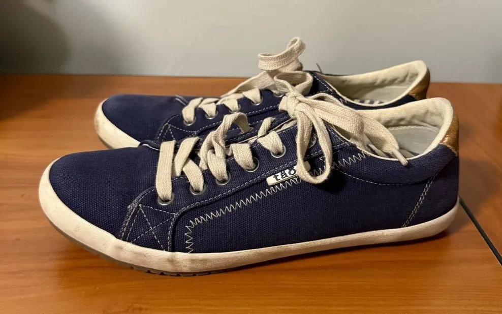 Taos Footwear Women's Starburst Sneaker Canvas Shoe Navy Blue‎ White Lace Up 8 Blue - $48 - From Abbey