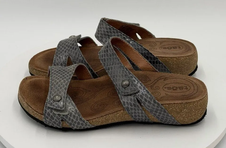 Taos Women’s Snake Embossed Leather Audition Strappy Sandals Shoes Size 6-6.5/37 Gray - $26 - From Jessica