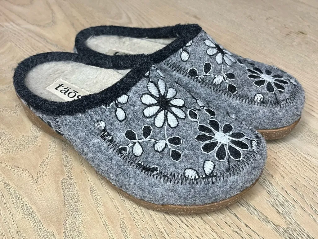 Taos Woolderness 2 Slip On Faux Fur Mule Slipper Women's Size 5-5.5 Gray Floral - $55 - From Amanda