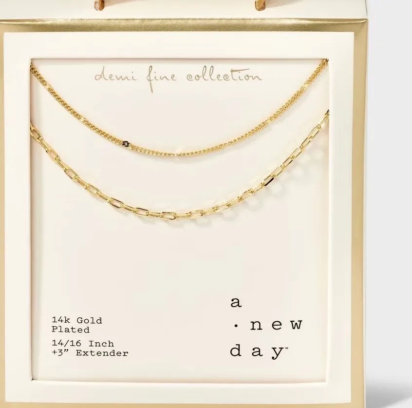Target 14K Gold Plated Flat Beaded and Link Chain Duo Necklace - A New Day™ Gold: Nickel-Free, Lobster Clasp - $10 - From Ava