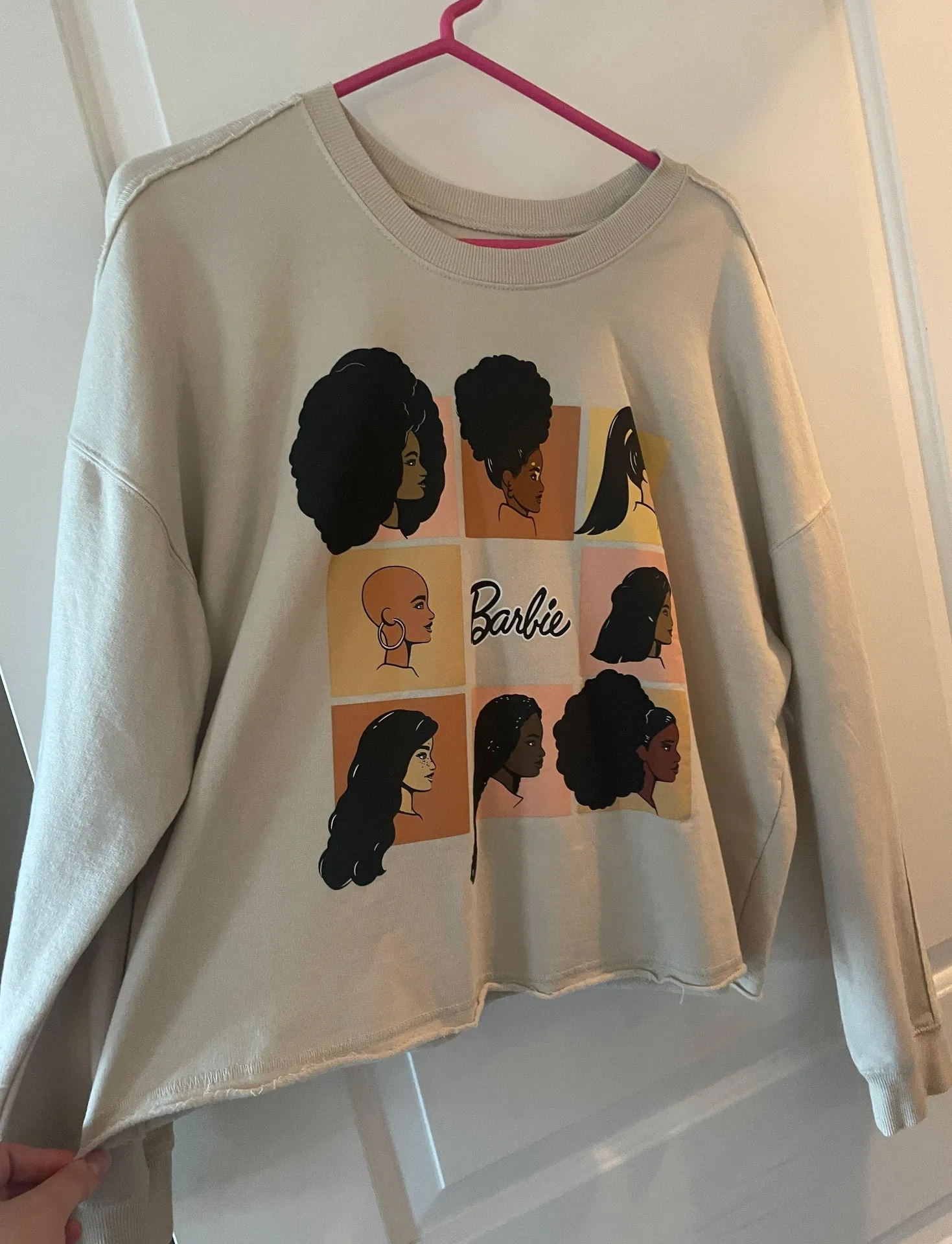 Barbie shirt with graphic on front, slightly crop fit.