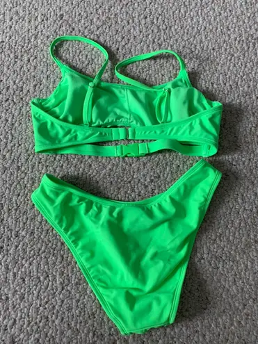 Neon green makes you look so tan!! Top is large and bottoms are medium! Never worn but no tags