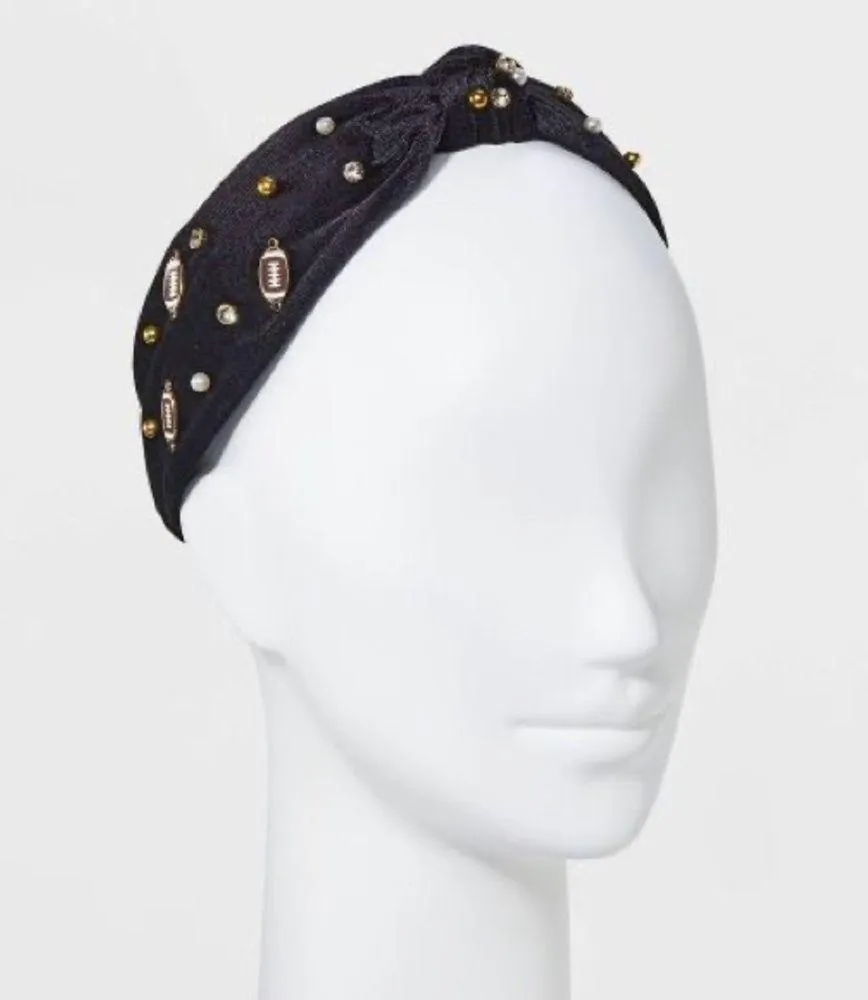 Keep your hair neatly styled with the Football Icon and Stone Velvet Top Knot Headband in Black. Thi... Show more