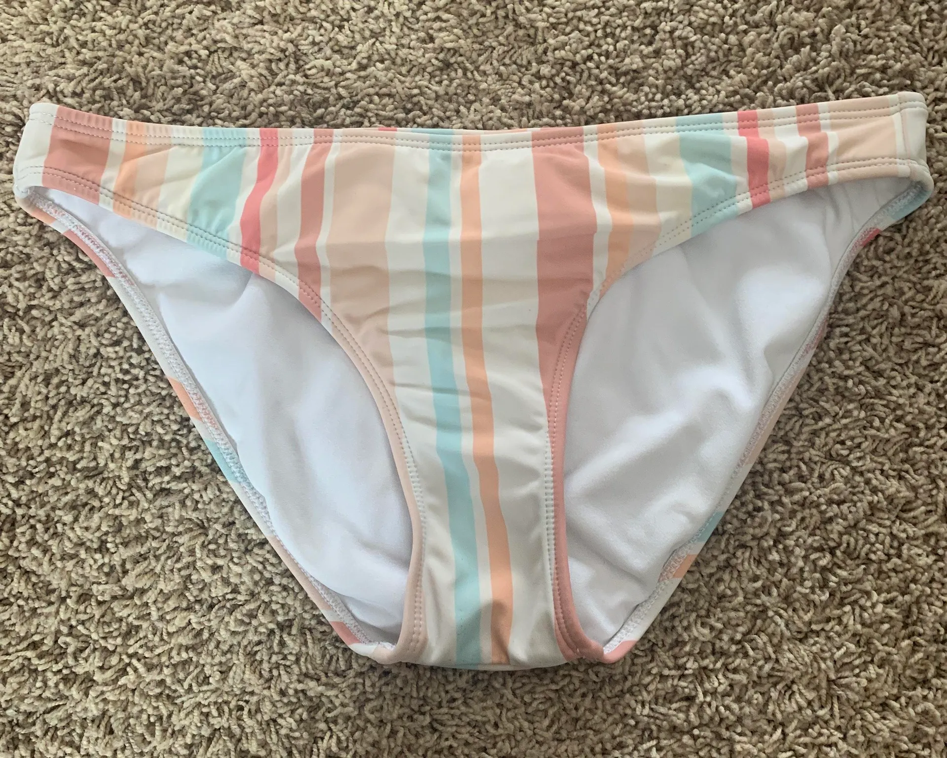 Stripe pattern, cute, medium fitting swim bottoms! Clean and vibrant colors!