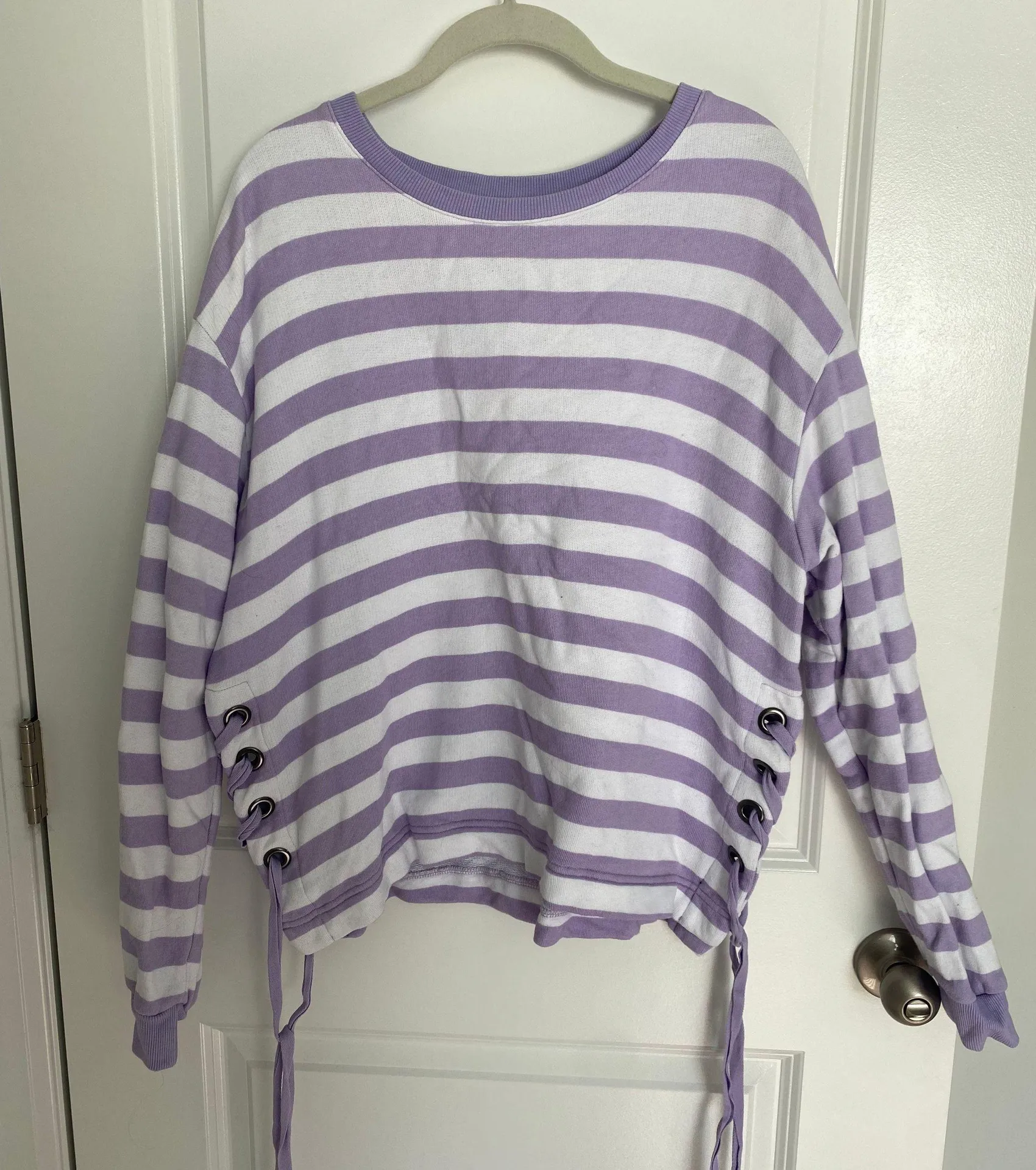 Barely worn white and lavender striped sweater with tie sides. Target brand A New Day size XXL