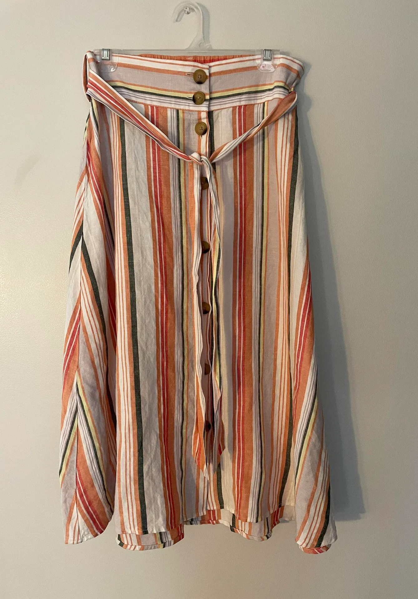 Over the knee, just above the ankle skirt. Worn once or twice, ties in the front. Great for the summ... Show more
