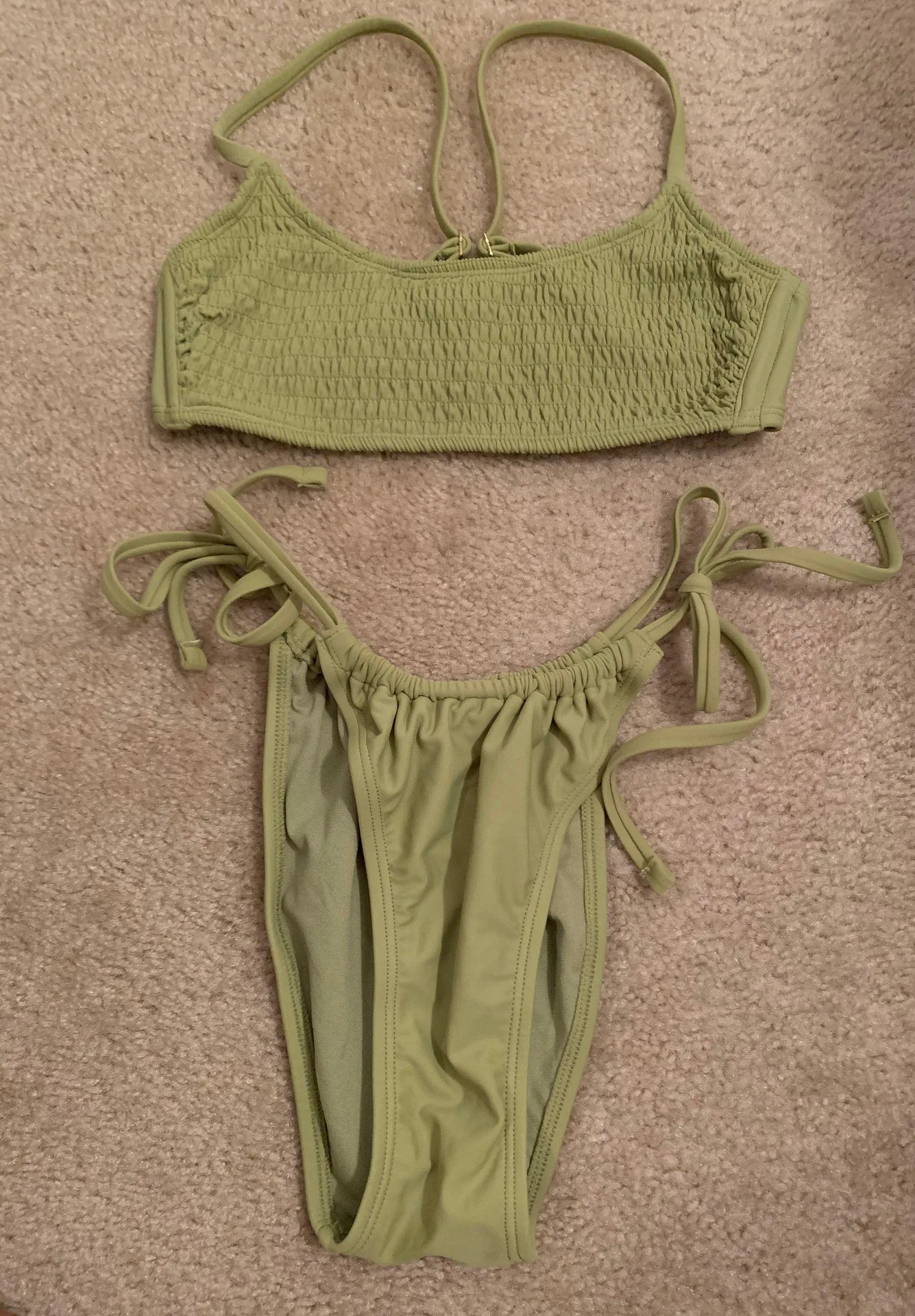 Green Swim Set Scrunched Top High Waist tie bottoms