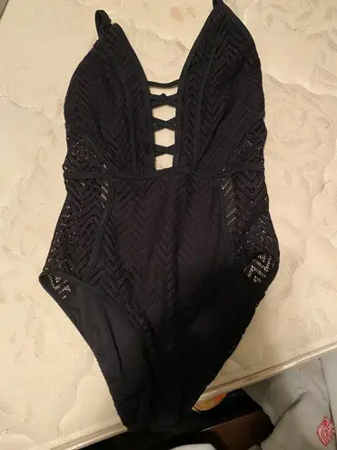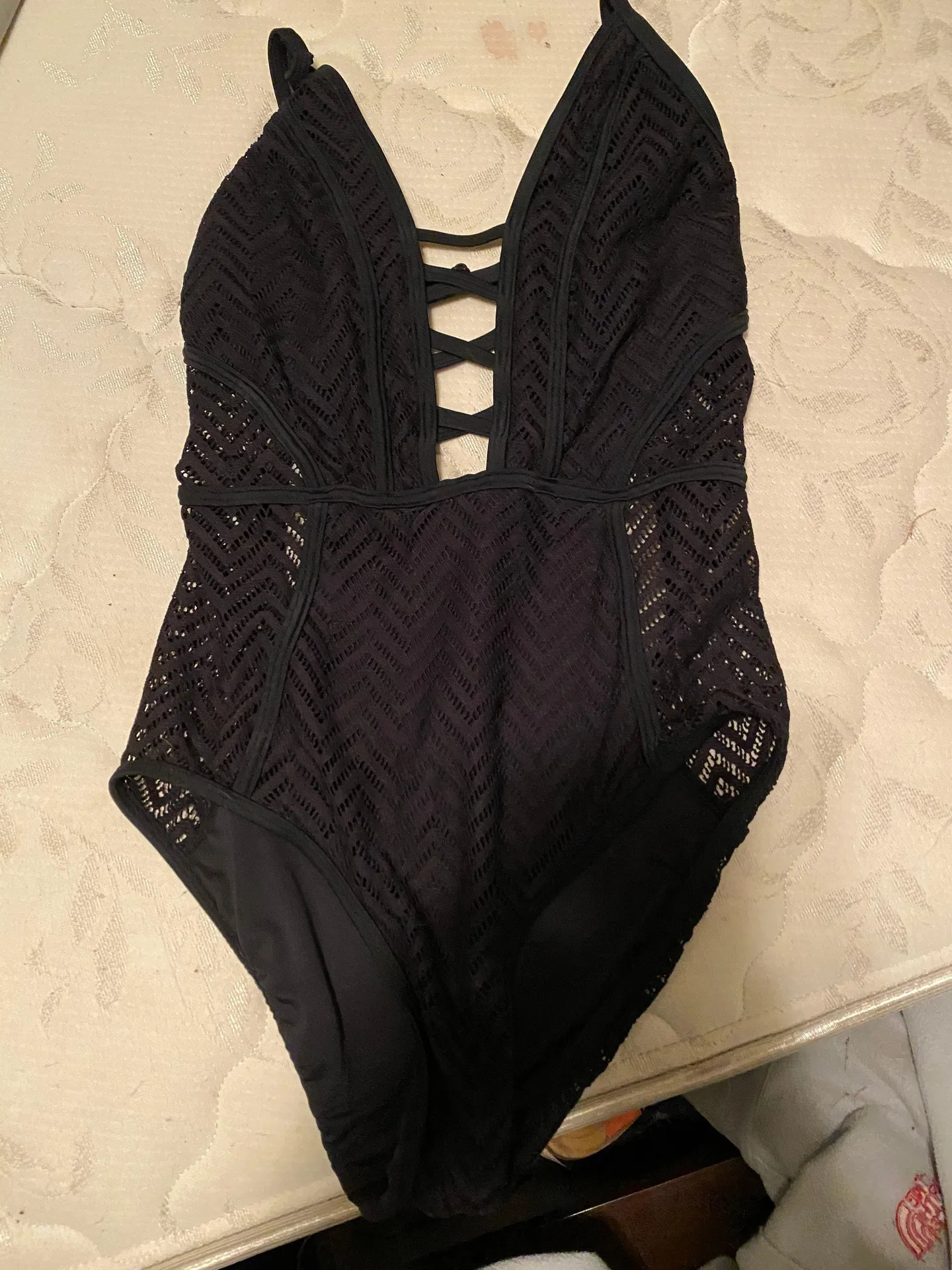One piece swimsuit can stretch to fit a medium