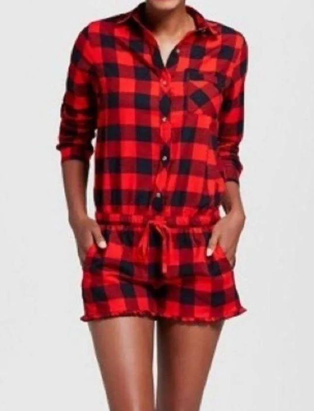 Target Xhilaration Buffalo Plaid Romper Sleepwear Pajamas Red & Black Size Large *Color may appe... Show more