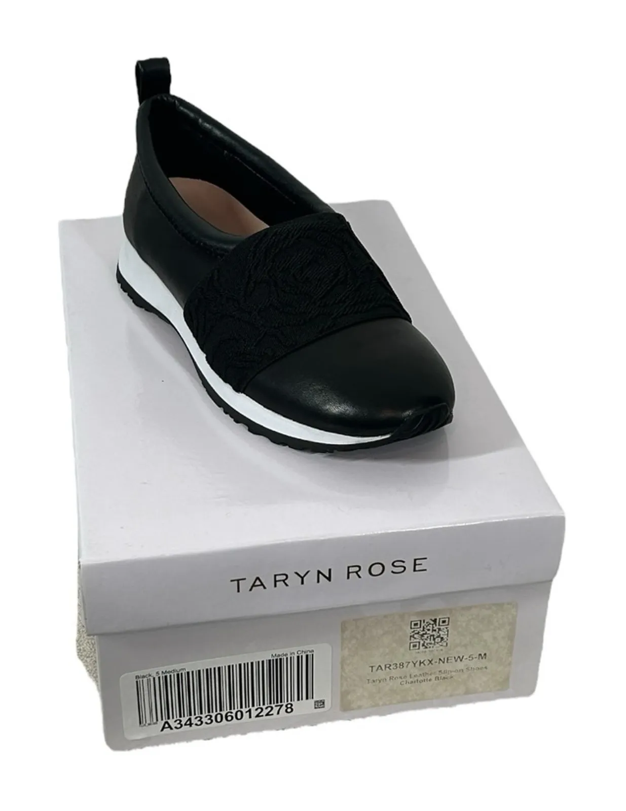 Step out in style with these Taryn Rose Charlotte slip-on sneakers, size 5. Crafted from smooth blac... Show more