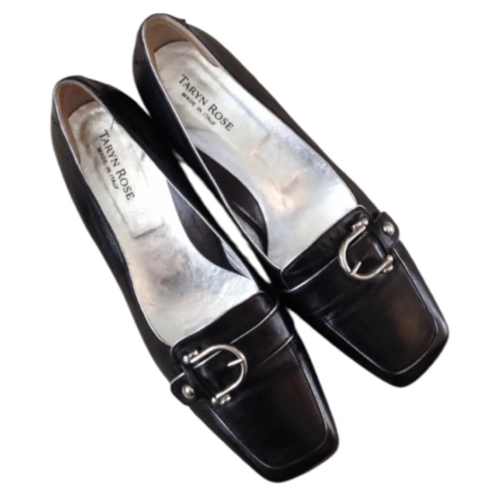 Taryn Rose Leather Loafers, Black & Silver with Buckle, EU 40 These are from her original line that were Made in Italy. Comfortable Poron footbeds with arch support. Square toe loafers with buckle detail embellishment and matching silver trim. Euro 40 fits about a size 9-9.5 US. Heel is approx. 1 1/2" high. Footbed is approx. 10 1/2" along the center line. Gently worn with light wear from normal use. Some scuffs and indentations around mostly the back of the shoes, but a lot of wear left in these beauties! Will ship in original dust bag to protect them in transit Smoke-free home; Same day shipping!