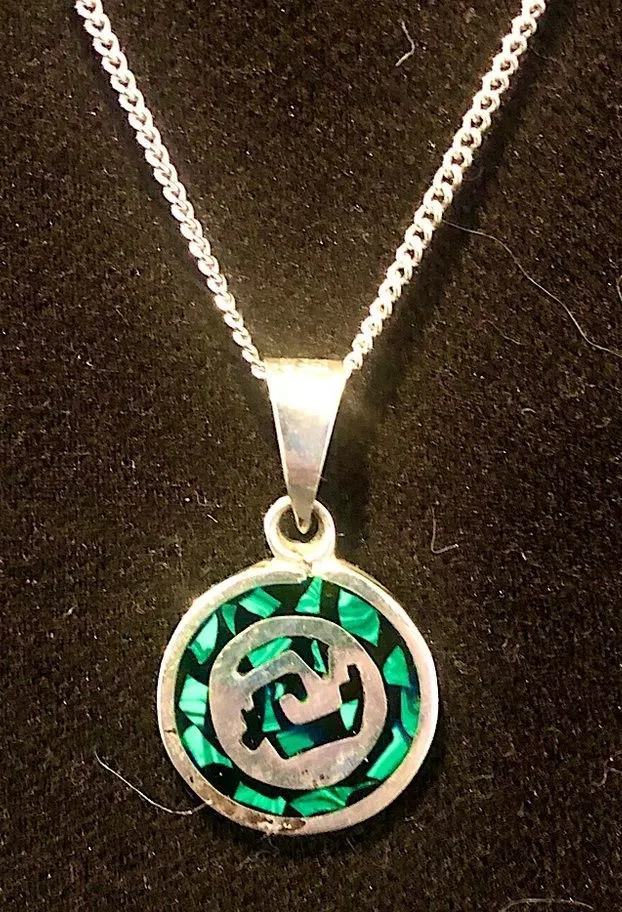 TAXCO Malachite Sterling Silver Necklace With Engraved Pendant TAXCO Necklace With Green Malachite... Show more