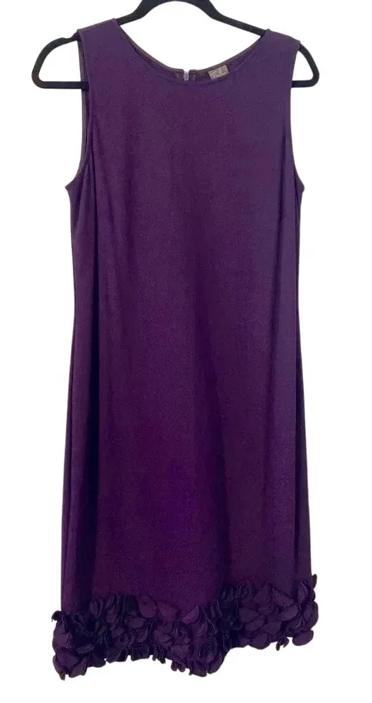 Taylor Brand Purple Ruffle Hem Sleaveless Sheath Dress Size 12 5% Spandex so it has some stretch to it. Dry Clean Color may vary due to lighting - 3rd photo best shows color Good Pre-Owned Condition – No flaws noted - see photos for details Measurements (Laying Flat) Pit to Pit: 18" Waist: 18" Length: 39" Thank you for your interest. This is a pre-loved item and sold as is. See photos for additional details as they are part of the description. Item is photographed and described to best of my ability and any omissions or errors are unintentional. If you are unsure, please contact me with questions or for additional photos before purchasing. Tape measure only for reference and is not included.