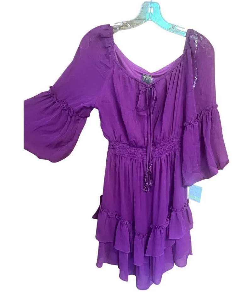 Taylor chiffon tulip sleeve Dress Sz 4 Raspberry Purple NWT - $18 New With Tags - From Dawn