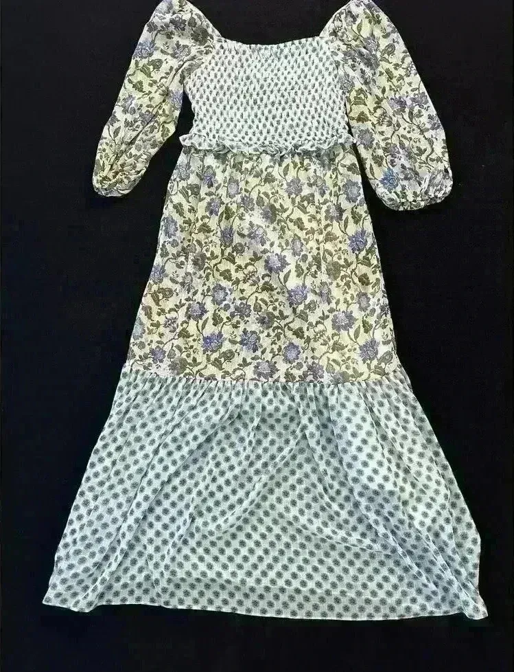 This stunning Taylor maxi skirt dress is a must-have for any fashion-forward woman. The dress features a beautiful green and blue floral pattern that is sure to turn heads. The smocked detailing adds a touch of elegance to the blouson style, while the long length makes it perfect for any occasion. Crafted from high-quality materials, this dress is comfortable and durable. The size 8 regular fit is perfect for most women, while the multicolor exterior adds a touch of sophistication. Whether you're heading to a wedding or just out for a day on the town, this dress is sure to make you feel confident and stylish. Never worn sundress