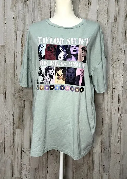 All orders ship next business day! Conditions: good used condition/No holes/No pilling/No fade - One small pink stain on the bottom right. Please see photos for more details Smoke free home! Please ask any questions! Thank you for Looking & Happy Shopping Brand: Unbranded Size: M Color: Teal Department: Unisex Adults Type: T-Shirt Theme: Music, Concert Fit: Classic Sleeve length: Short Sleeve Character: Taylor Swift Pattern: Graphic Print Character family: Taylor Swift Neckline: Round Neck Features: Official Merchandise, Soft Fabric Material: Cotton Season: Summer Year manufactured: 2020-2029 Garment care: Machine Washable Pit to Pit: 23" Length: 26" Keywords: Taylor Swift merchandise, unisex t-shirt, music concert tee, beige graphic tee, classic fit t-shirt, short sleeve shirt, round neck top, soft cotton fabric, official Taylor Swift gear, summer fashion, machine washable t-shirt, pre-owned clothing, 2020s fashion, casual wear, concert outfit TOP1136A TOP1136