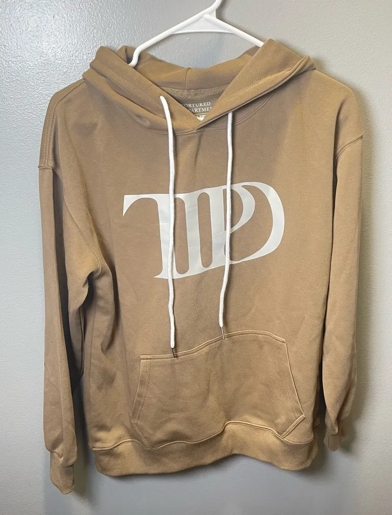 Taylor Swift The Tortured Poets Department Pullover Hoodie Beige Size Large Cotton/Polyester Blend Long Sleeves Drawstring Hoodie music, festival, concert, T Swift, Swifty, casual 554
