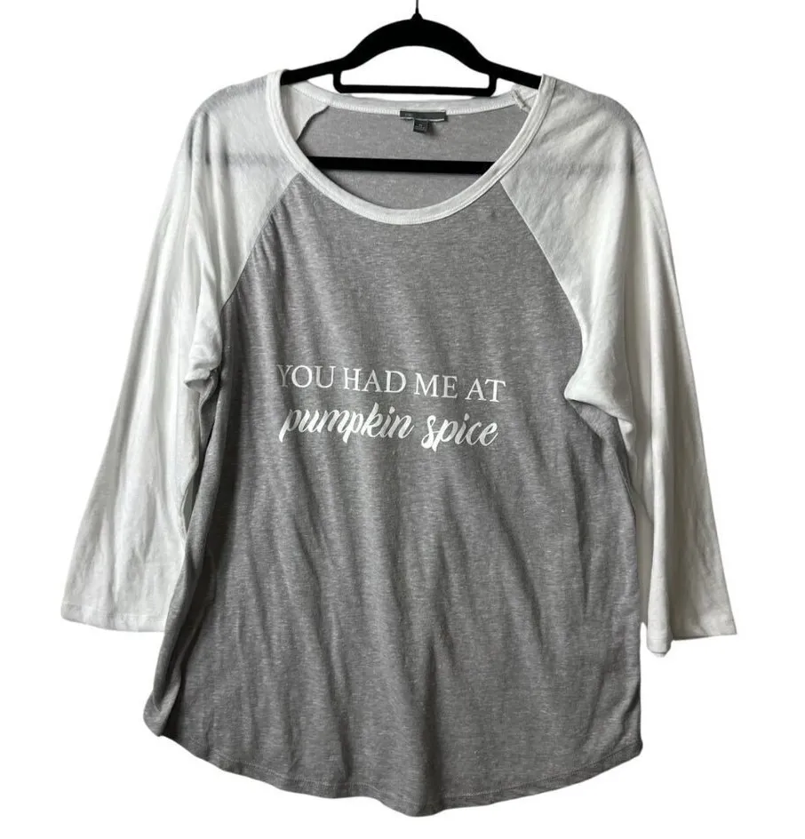 Excellent condition This TBH t-shirt is perfect for any casual or travel occasion. The gray colorblock design with pumpkin spice accents adds a touch of seasonal charm. The 3/4 sleeves and round neckline provide a comfortable fit for all-day wear. Made of a lightweight and breathable blend of polyester, rayon, and cotton, this t-shirt is machine washable for easy care. It features a pullover closure and stretch for added comfort. Whether you're heading out for a pumpkin spice latte or running errands, this t-shirt is a classic addition to your wardrobe.