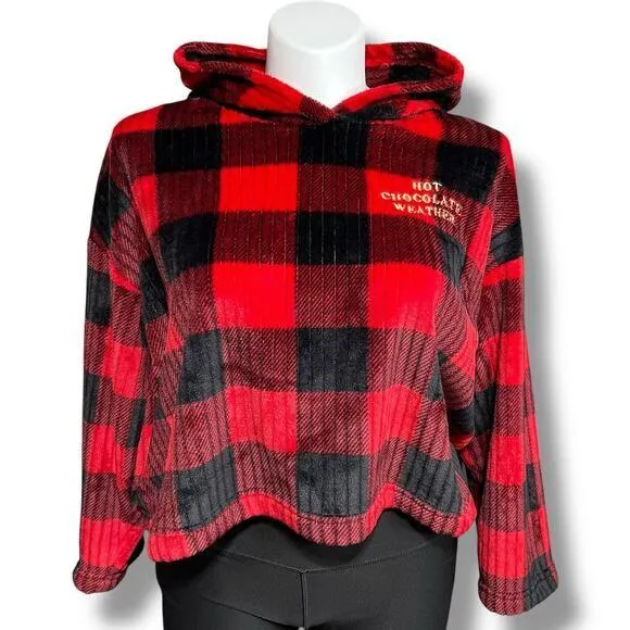 Fleece Hoodie Buffalo Plaid Hot Chocolate Weather Red Black Joyspun Condition: Like New Size: Large... Show more