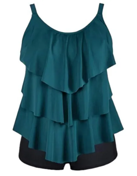Teal Black Tankini Set Layered Ruffle Top Boyshorts Size 10 NWT #6973 - $28 New With Tags - From Vir