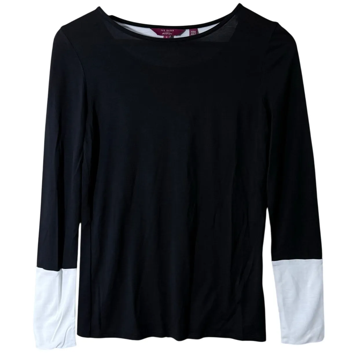 Ted Baker Black Crew Neck Shirt Colorblock White Cuffs Long Sleeve Top NWOT Size 1 (Size XS/Small)... Show more