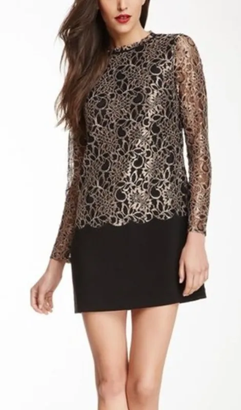 Ted Baker Elke Lace Shift Dress Womens Size 6 (TED SIZE 2) Black Gold Dark Romantic Chic Feminine E... Show more