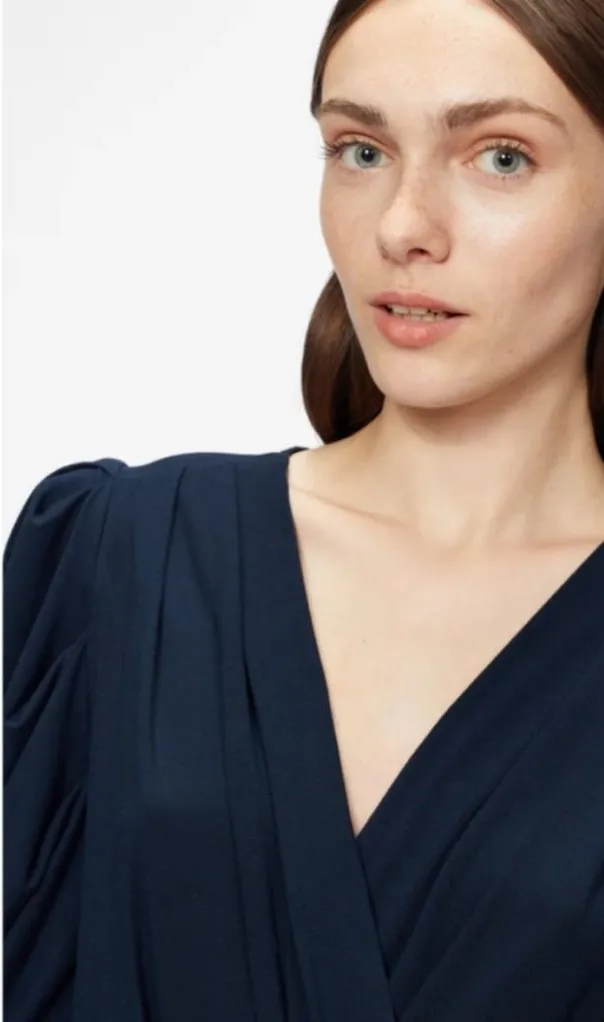. This elegant navy ruched long sleeve dress features a sophisticated design perfect for any occasio... Show more