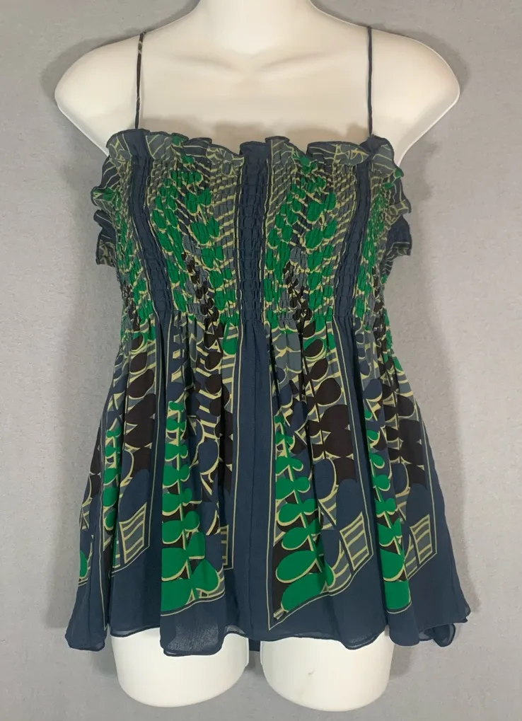 Ted Baker Smocked Camisole Top - Green & Navy Print Chic and feminine Ted Baker camisole top featuri... Show more
