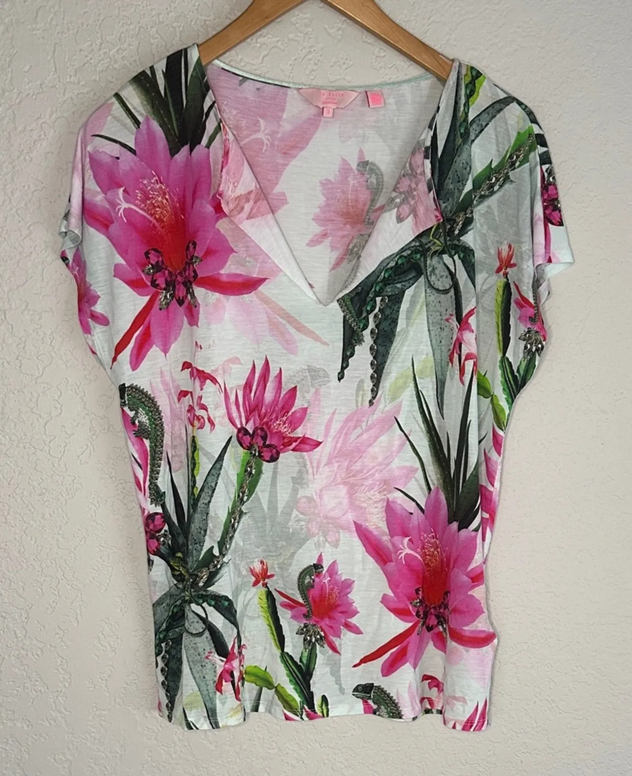Ted Baker London Top Tee Size 3 Ted which is large see measurements Leileen Green Chameleon Lizard... Show more