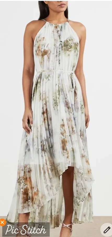 Description in photos. Lightweight lined chiffon. 44.5” shoulder to bottom on front 54” shoulder t... Show more