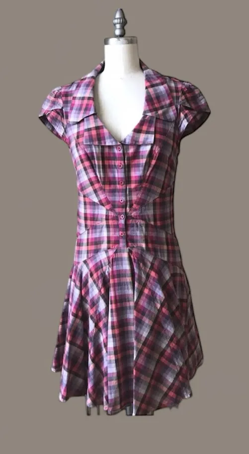 Eye-catching Ted Baker skater dress with a bold pink and purple checkered design. Ideal for a stylis... Show more