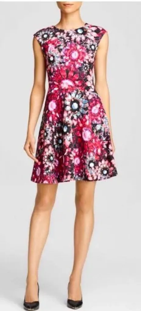 Ted Baker Women’s Crystal Brooch Skater Dress Pink Magenta Jewel Tone Gem Mini Ted Baker 3= US size... Show more