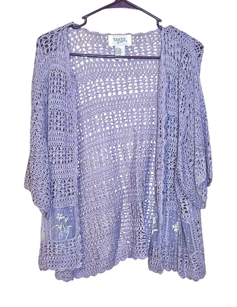 Teddi Knit Cardigan Sheer Purple Ramie Rayon Floral Size Extra Large Vintage XL - $33 - From Liberty