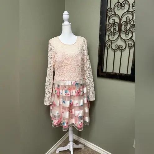Teeze Me blush pink open lace overlay floral long lace sleeves floral dress Size undefined - $50 - From Sherri