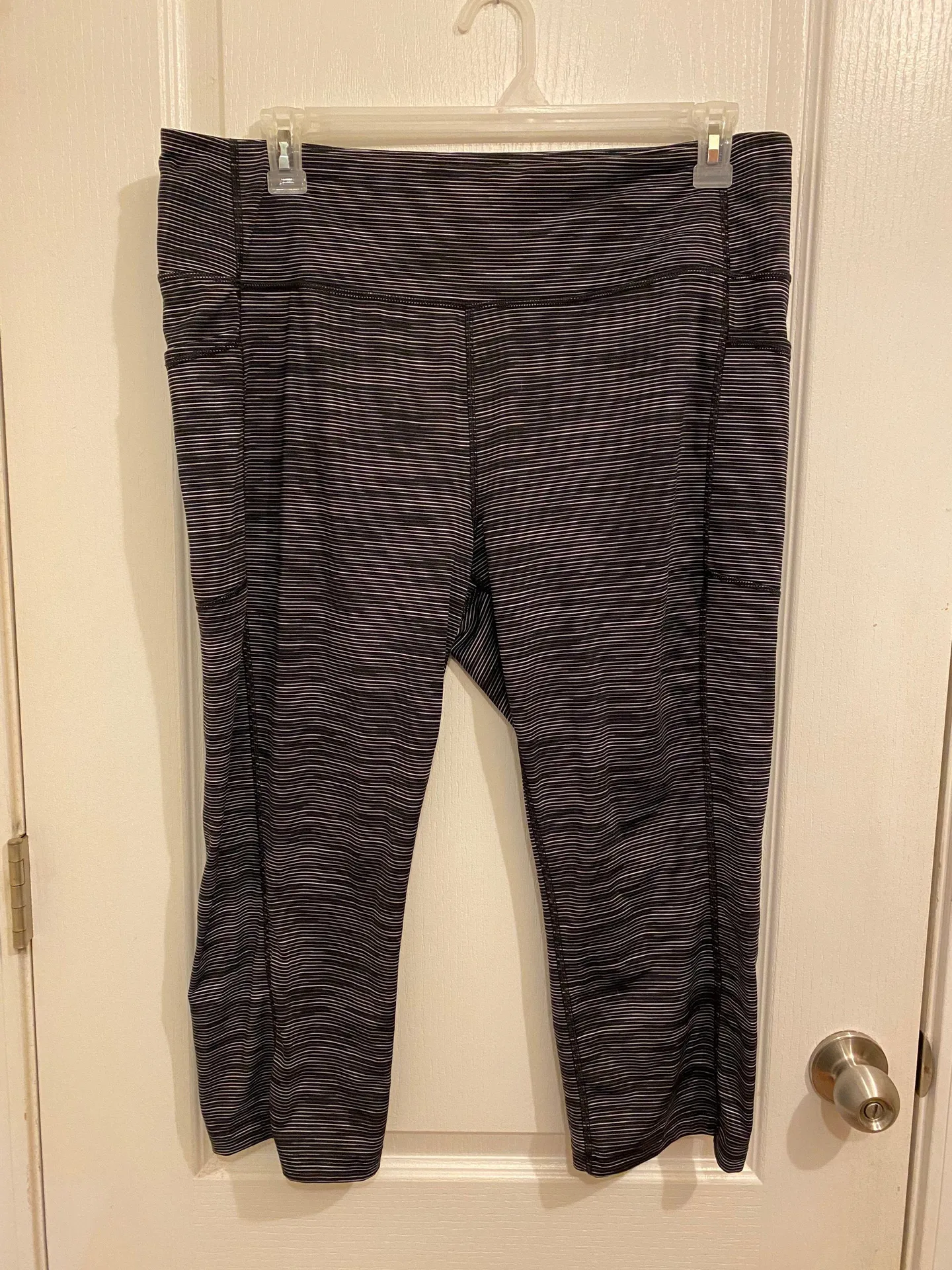 TEK GEAR black/gray striped Capri workout leggings, pockets on sides, great condition, size 2X