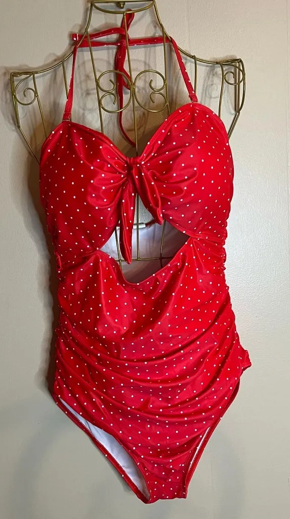 Tempt Me Red Polka Dot Large Vintage Look One Piece Halter Swim Suit - $33 New With Tags - From Brandy