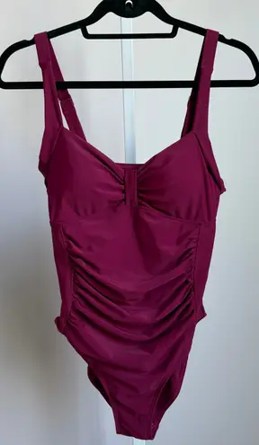 Tempt Me Swimsuit sz M burgundy one piece swimsuit NWT Brand new with tags. This is a Tempt Me brand one-piece swimsuit, new with tags. The swimsuit is a solid burgundy color with a ruched design on the torso. It features wide straps and a sweetheart neckline. The interior lining is white. The material composition is visible on the tag, including spandex. The item is in new condition, with original tags attached. #NN21 Weight: 7 oz All thrifted items have been carefully washed with hypoallergenic laundry detergent and packaged with love.