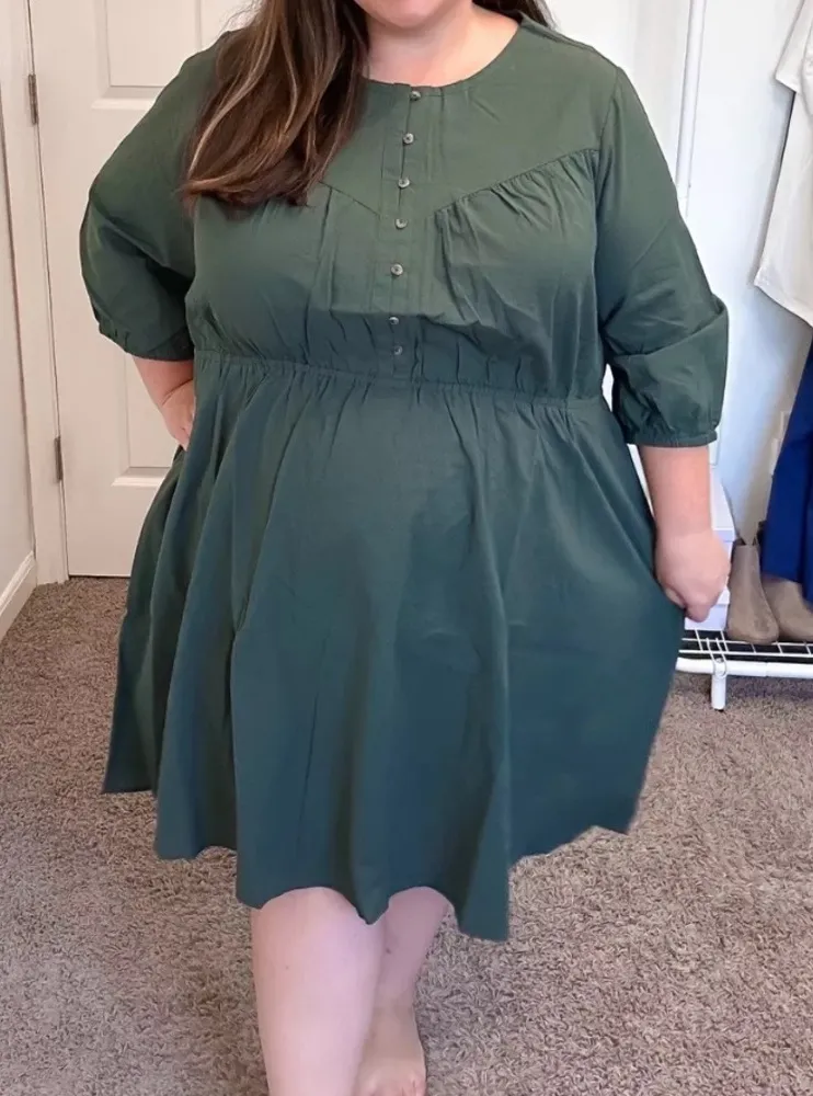 ARMY OLIVE GREEN MIDI DRESS POCKETS 3/4 SLEEVE SIZE 3X - $9 New With Tags - From Audrey