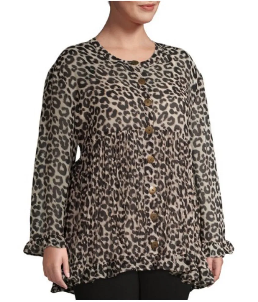 Leopard Ruffled Tunic Babydoll Top‎ Shirt PLUS Size 0X 14 Animal Print NWT NEW Black - $15 New With Tags - From Jennifer