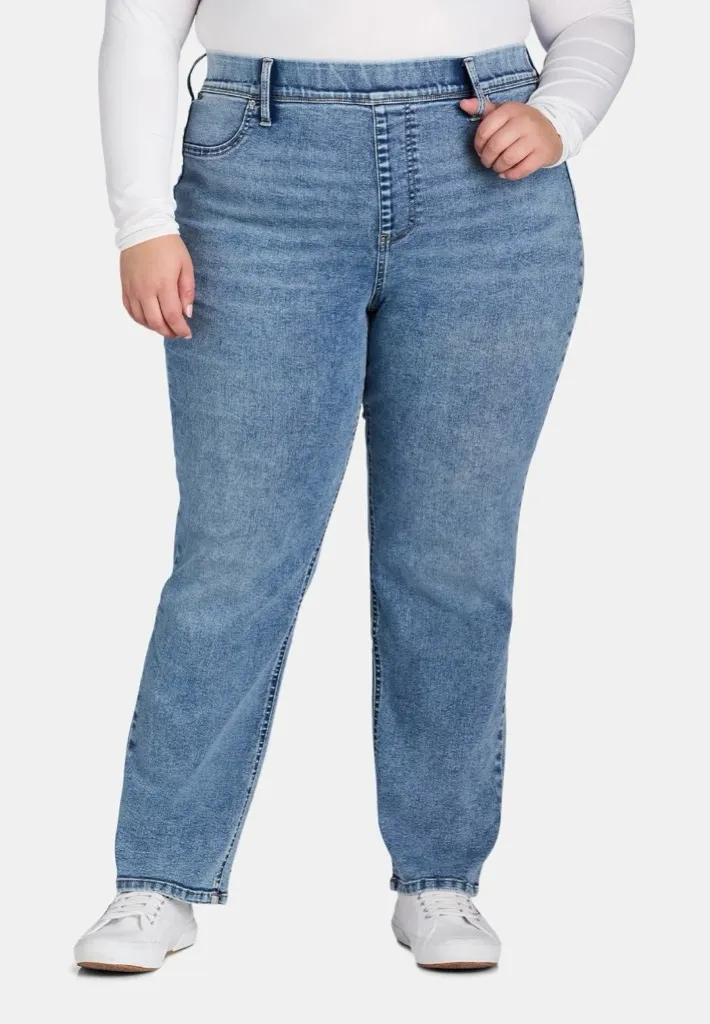 These Mid-Rise Straight-Leg Jeggings offer the best of both worlds. The curve-flattering fit of your favorite leggings? Check. With the look of your most-loved jeans? Check! Crafted in premium stretch denim for a comfy fit that moves with you all day long without losing shape. If you aren't already a jeggings lover, this straight leg pair is ready to make you an official fan. • Material: 61% Cotton/24% Polyester/14% Rayon/1% Spandex • Care: Machine washable • Fit: Slim through the hip and thigh; straight leg opening • Rise and Inseam: Mid rise; 29" inseam • Closure: Pull-on style • Pockets: 2 back pockets • Features: Elastic waist; faux fly; decorative front pockets; traditional stitching; medium acid wash 4X (28W-30W)