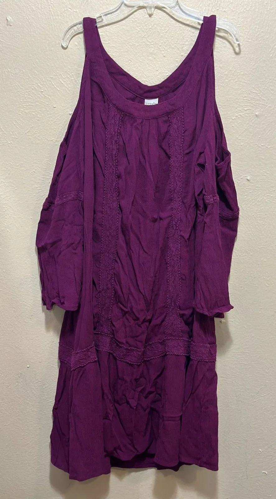 Keywords: cold shoulder dress, purple dress, womens dress, casual dress, boho dress, summer dress, vacation dress, crochet trim, bohemian dress, midi dress, dress No measurements will be provided!