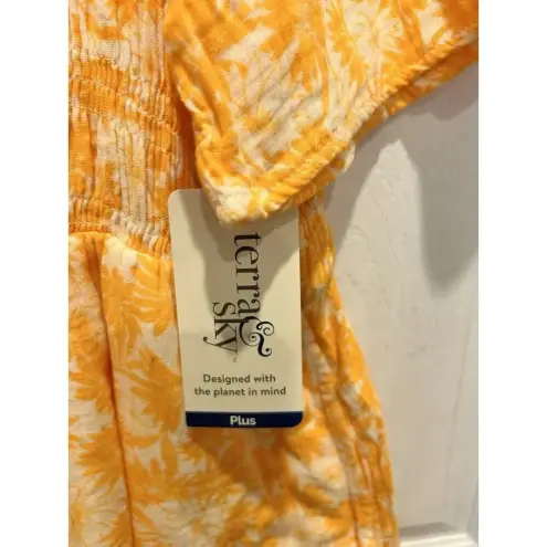 Terra Sky Fit & Flare Flutter Sleeve Smocked Dress Sz 14 0X Orange White Floral NWT. No flaws. Smock... Show more