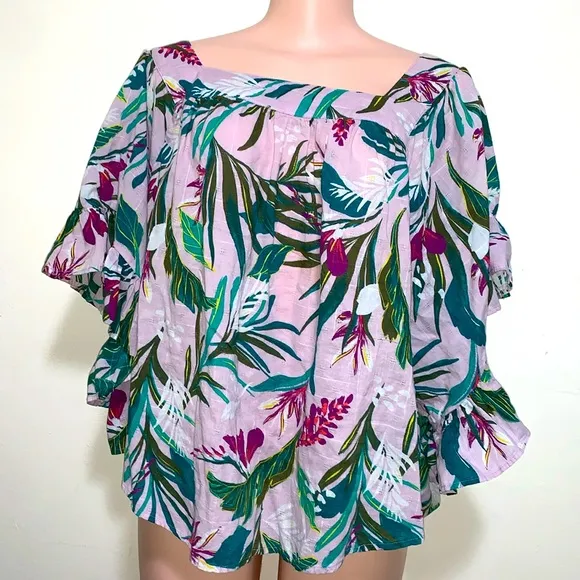 Terra & Sky woman floral tropical blouse plus size 2X flutter sleeves Purple - $8 - From Mayra