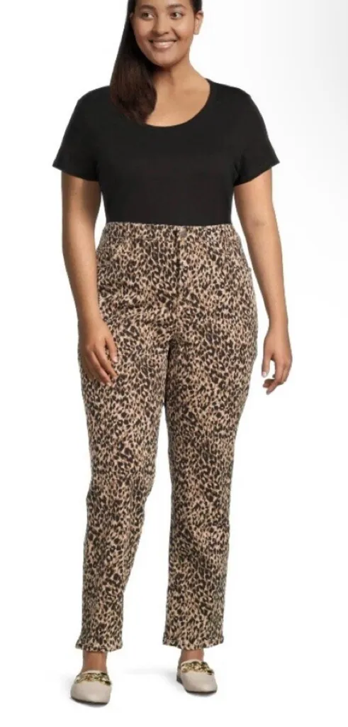 SEE MEASUREMENTS! TERRA & SKY qWomens Straight Leg Jean Size 20W Petite Animal print brown black bei... Show more