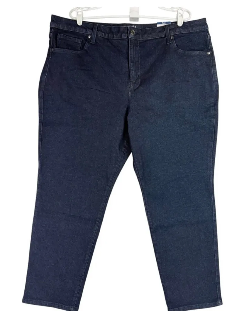 SEE MEASUREMENTS! TERRA & SKY Womens Straight Leg Jeans Size 16W Petite High Rise Dark Wash New 67%... Show more