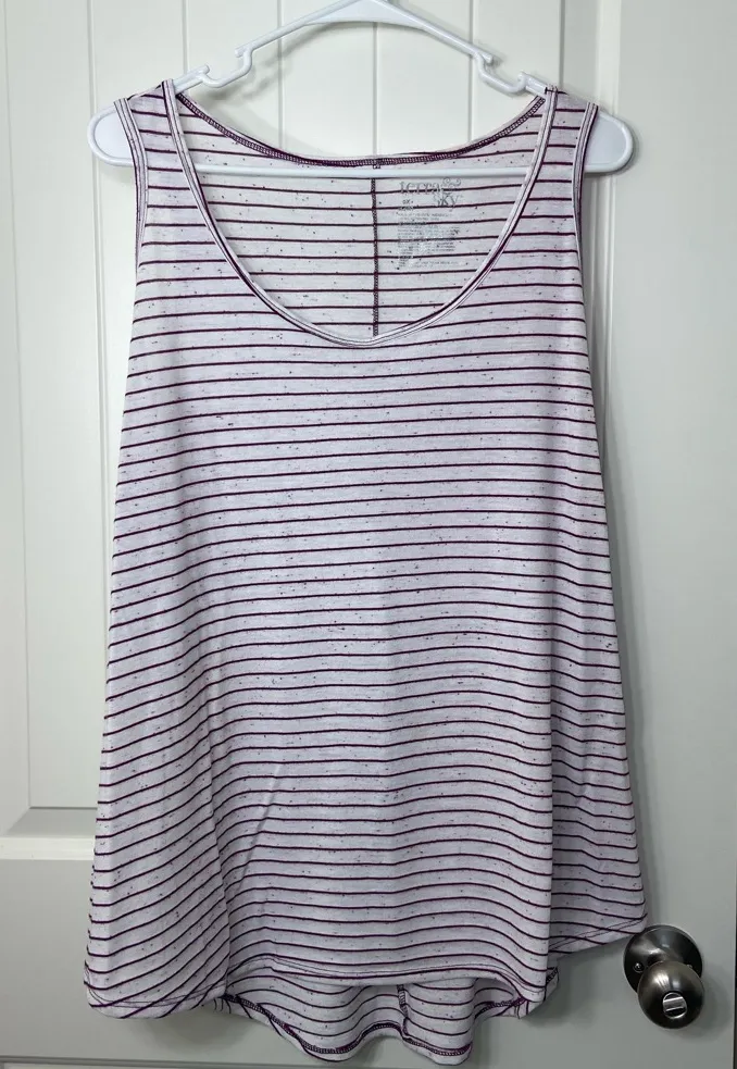 Terra & Sky women’s white burgundy striped speckled scoop neck tank top summer Size 0X In good used condition *has a very faint stain on the front as shown Smoke free home! Pit to pit 22 inches, length from shoulder 26.5 inches