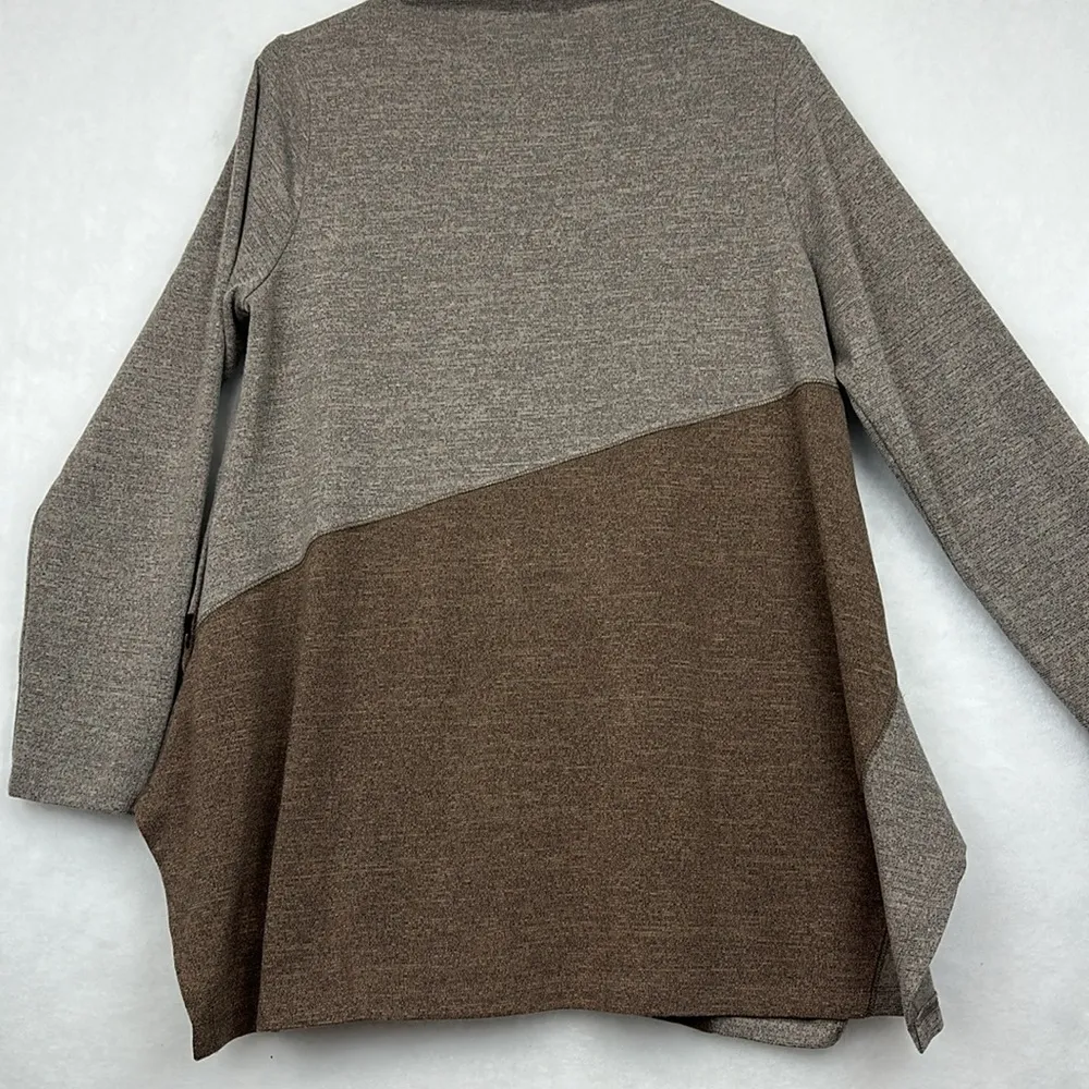 Brown Color knit top with embroidery. Long sleeves. Side pockets. Loose fit. Mock neck. Size Large Plenty of stretch. Please see photos for measurements (in inches). We are in smoke free, pet free and clean environment. OFFERS ARE ALWAYS WELCOME! NOTE TO BUYERS: Clothing has been properly cleaned prior to Listing. They are free of odors and stains, ready to wear. All items come from a smoke free environment. We try to describe them as accurate as possible. Should we miss anything, please let us know before leaving negative feedback. Contact us, we will work to correct it. Shipping: All orders will be ship out within 24 hours of payment except holiday or weekend. We ship USPS and every item is issued a tracking number to follow your package. Thanks for your business!