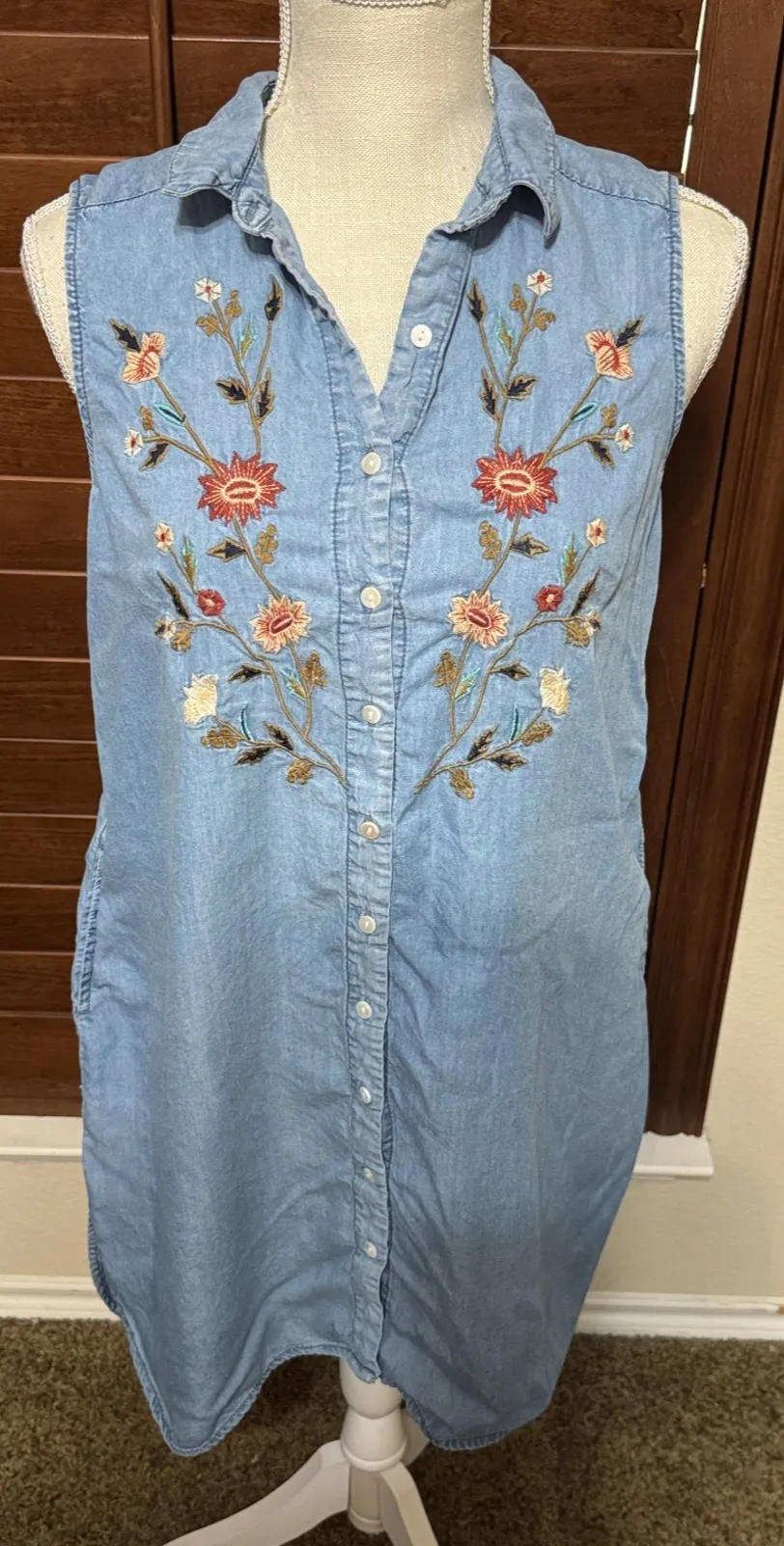 Terre Bleue Lyocell Shirt Dress Button Up Floral Embroidered sz S Chambray Blue - $25 - From Lisa